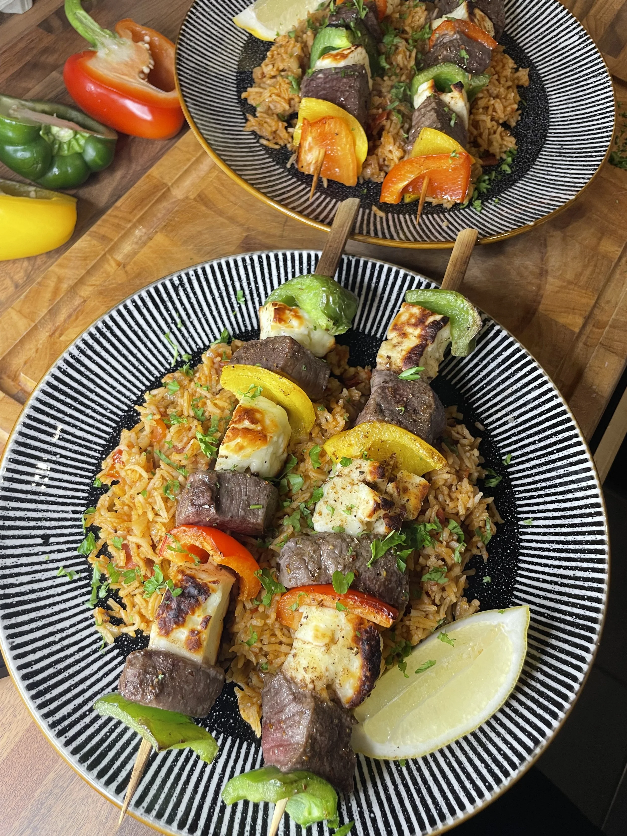 The tenderness of steak and the richness of halloumi with a side of aromatic and spiced Jollof Rice. The result is a delicious and well-rounded meal that's perfect for family dinners or special occasions. Please note this isn't a traditional jollof rice but more so a quicker version using more accessible ingredients.